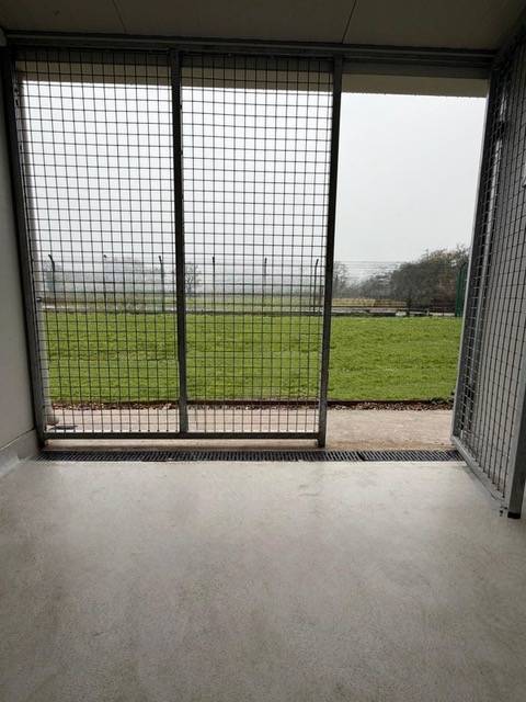 The dogs are housed in spacious indoor kennels with large adjoining outside runs, where your dog can choose to sunbathe or just enjoy the view. All our kennels are set out to ensure your dog is not closed up in a inside kennel all day, but has access to constant fresh air and stimulus, ensuring boredom is not an option.