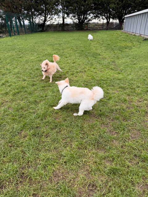 All dogs must be fully vaccinated. Current vaccination certificate must be produced whenever pets are brought in to board. We are able to administer medication for your pet. We provide premium wet and dry food at a cost of £2 per dog per day for dry/wet food or £4 a day per dog for both, but we understand if owners want to bring their own food. Dogs are frequently exercised throughout the day in our large secure grassed paddock.